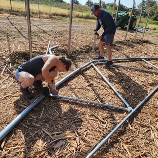 We won a NRCS grant to help fund a high tunnel and have been working on our 132x30sqft high tunnel for the last couple of months in between all our daily responsibilities. This weekend all the trusses are up and most of the purlins. Wouldn't have happened without hard work from our family. Our family farm wouldn't exist without family! #teamwork🌱